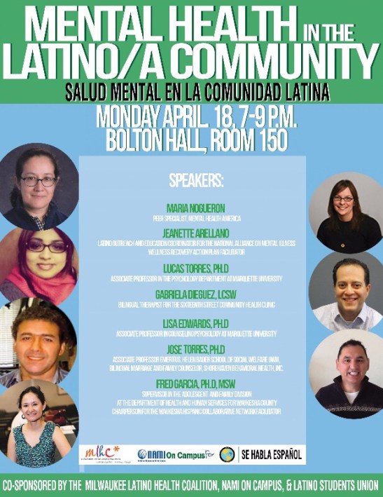 Co-Sponsors: NAMI on Campus, Latino Student Union, Milwaukee Latino Health Coalition